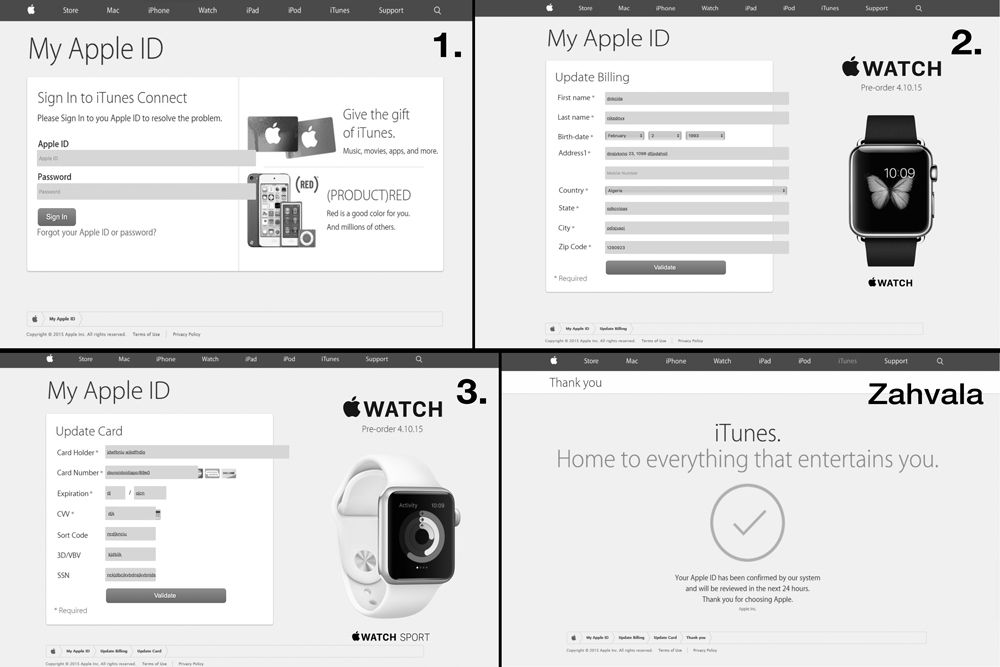 Ko žrtev izpolni vse potrebne podatke se prikaže četrta stran kjer se nam napadalci zahvalijo, čez nekaj sekund pa nas preusmerijo na legitimno spletno stran podjetja Apple. Vsem uporabnikom svetujemo: BODITE PAZLJIVI IN NE POSREDUJTE SVOJIH PODATKOV saj gre za poskus zlorabe. Pristojne službe so sicer kmalu ob zaznani grožnji onesposobile domeno, tako da se nič hudega sluteči uporabniki ne morejo več povezati na prej omenjeni strežnik. To sicer ni osamljen primer, saj uporabniki povsod po svetu dnevno dobivajo gore tovrstnih sporočil. V večini primerov elektronska sporočila deluje na podoben princip, z uporabo socialnega inženiringa in v nadaljevanju s phishing stranjo poskušajo od žrtev izvabiti čim več osebnih podatkov za nadaljnjo zlorabo.